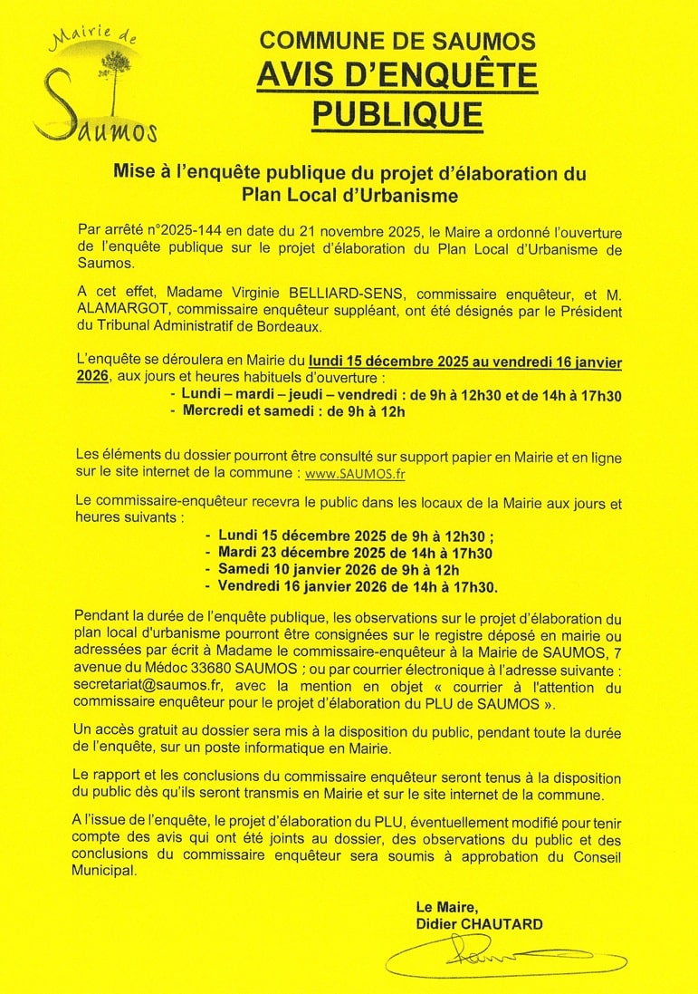 En l’absence de POS, révoqué, et de PLU, actuellement en refonte pour la commune de Saumos,